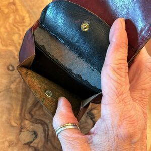In good used condition, but classic look! Snap closure. In dark burgundy leather.