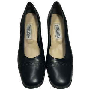 Vintage Leather Black Heels Studio Roma Block Heel Closed Toe Heels Size 8.5