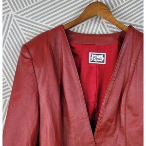 Vintage Leather Bomber Jacket Plus Size 3X 4X Coat Red Waist Length 80s 90s
