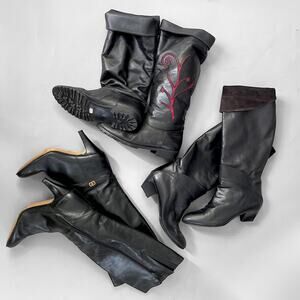 Vintage Leather Boot LOT OF 3 Made in Italy 70s 80s size 6.5 7 7.5 Scrunch Boot