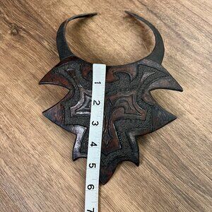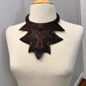 Vintage Leather Breastplate Choker Engraved Necklace Statement Piece African