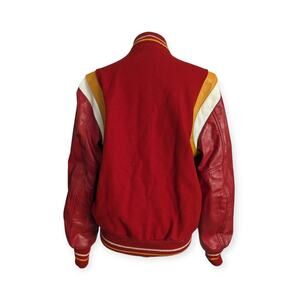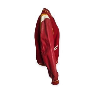 Vintage Leather Champion Varsity Jacket Burgundy Gold Butwin