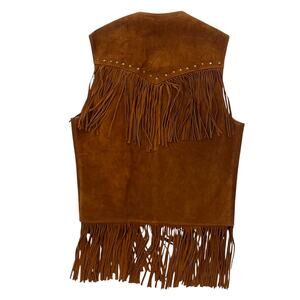 Vintage Leather City Suede Fringe Vest - Brown - Men's Size Large