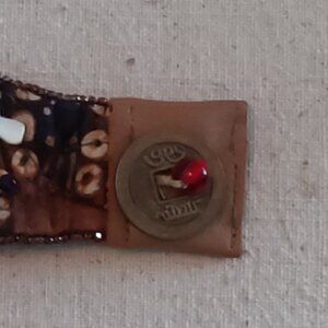 Vintage Leather, Cloth & Beaded bracelet with Chinese Coin clasp