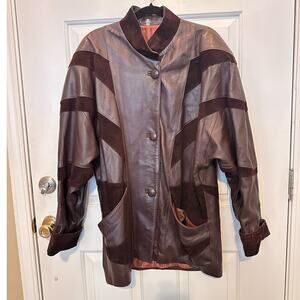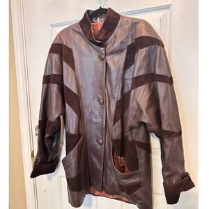Vintage Leather Coat Womens XL Dolman Sleeve Suede Chocolate Brown Oversized