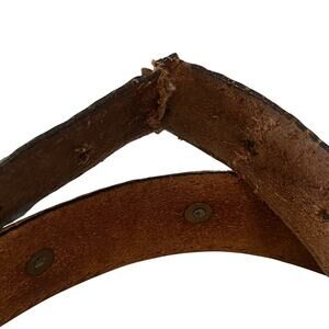 Condition: Pre-owned; heavy wear with cracking and damage on backside leather, buckle and conchos show tarnish and scratches. Structurally intact, still wearable. See photos.