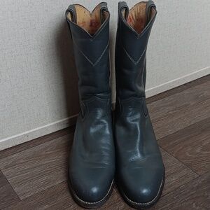vintage Leather Cowboy boots by Justin in a slate Grey color. these are vintage so they have some normal wear and tear and natural creasing in the Leather in great condition