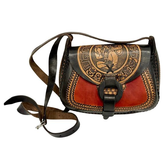 Absolutely beautiful and unique vintage leather crossbody bag handmade in Mexico - truly a work of art!