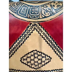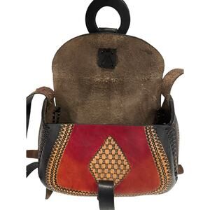 Vintage Leather Crossbody Bag Handmade in Mexico - Red Beige Black - Mint Cond!