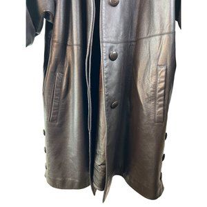 Amazing long cuff design with large leather-covered buttons. The back and the front top neckline have a wonderful pleating design all around. Bat sleeves are roomy and fabulous. Deep pockets for all your needs. Just an amazing timeless heavy quality jacket.