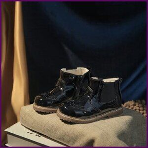 Vintage Leather Embroidered Toddler Girls Boots Mid Calf Water Resistant