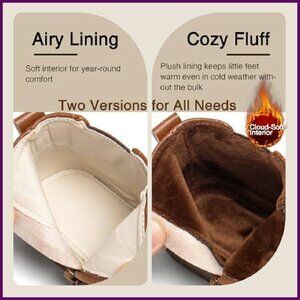 • Fabric: Crafted from water-resistant rustic leather with a non-slip sole. Two lining options: an airy soft interior for year-round comfort and a plush, cozy fluff lining for cold weather.