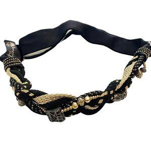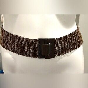 Vintage Detailed Flower & Velvet Leaves Focal, Back Cylinder Slide Closure, Minor Stretch, Medium Width, Leather Statement Belt