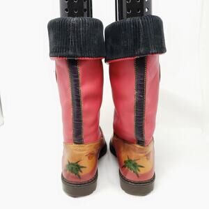 Vintage Leather Foldover Boots Pink Brown Tropical Beach OOAK England Sz UK 6