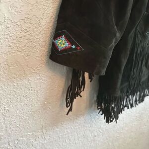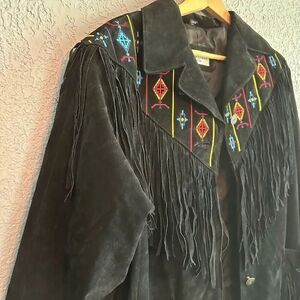 Vintage Leather Fringe Western Lew Magram Size Large Embroidered Southwestern