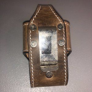 Vintage Leather Holster w/Gold Silver Star Embellishment Phone Multi-use Carrier Velcro Close Belt Clip-on Pre-owned (LLT0000383)