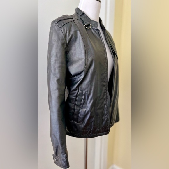 Vintage Leather Jacket 70s/80s Black Unisex Moto Bomber Size M/L Tab Shoulder