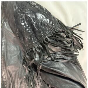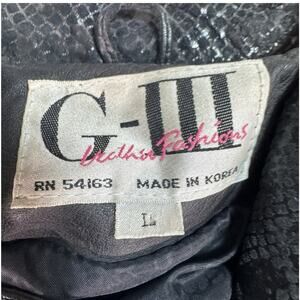 This G-III G3 Women's Vintage Leather Jacket in size large is a stylish and versatile black coat for women. Made from high-quality leather with a nylon lining, this short-waisted jacket features a snap closure, pleated accents, and shoulder pads, adding a touch of sophistication to the motorcycle style. With features like waterproofing, padding, and pockets, it is practical for the winter, fall, and spring seasons. This designer coat from Korea is a timeless piece that can be cared for with dry clean only, making it a must-have addition to any wardrobe.