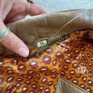 This vintage Mezzo leather jacket is a must-have for anyone looking for a stylish addition to their wardrobe. The style feels like high quality vintage Italian leather and the lining material is satin, giving the jacket a luxurious feel.