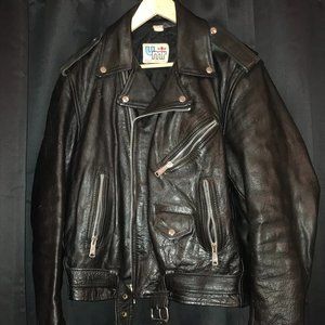 Amazing 80’s Men's leather motorcycle jacket from UMR. It has perfect 1950’s styling with a bonus of 80’ youth! It’s in prime condition with some light and natural wear on the arms and shoulders.