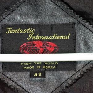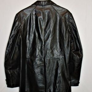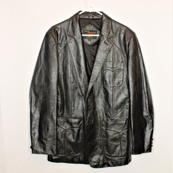 Perfect pre-owned condition! 100% Genuine leather shell, with nylon acetate lining. Split tail, three exterior pockets, two interior pockets, and padded shoulders. Ideal weight for a leather jacket, not over bearing and heavy, but sturdy enough to protect you from the elements. Great item!! Men's size 42