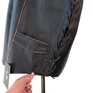 Item: Leather King Mens 48 Vintage Deadstock Americana Embossed Motorcycle Vest NWT