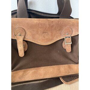 Vintage Leather L.L. BEAN Canvas Brown Travel Briefcase Crossbody Messenger Bag