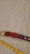 The entire length of the belt, no including the buckle, is 47.75 inches The center of the belt is navy blue over tan canvas with a multicolor nautical flags pattern