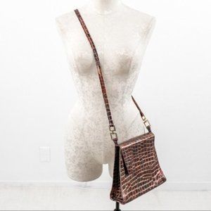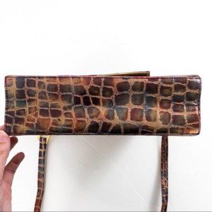 Vintage Leather Metallic Rainbow Crocodile Print Crossbody Bag