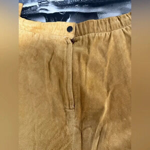 This brown midi skirt features a luxurious suede-like texture and an A-line silhouette that flatters the figure. Its paneled construction adds structure and shape, making it perfect for both casual and work occasions.