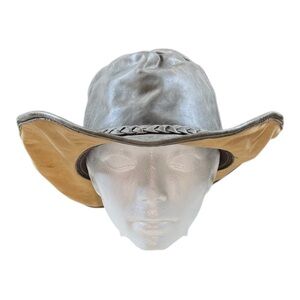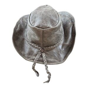 Vintage Leather Outback Made In Mexico Crocodile Dundee Style Hat in a size large. Has a braided hat band. Bendable wire brim. In good condition.