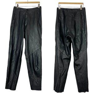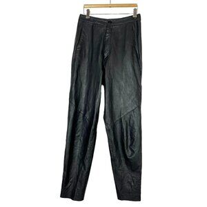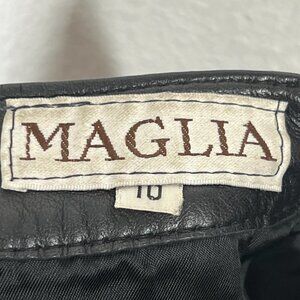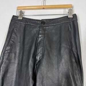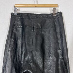 Black Leather Pants high waisted Maglia 80s raw hem, marked a size 10 but it's smaller and fits about a size 6-8. Made in USA. Please See meas for fit guidance.