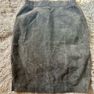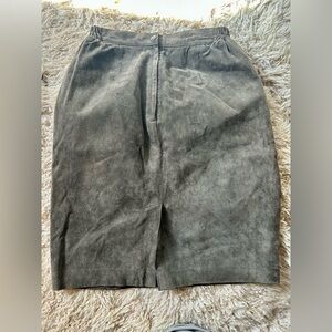 High waisted and form fitting with a slit at the back. Listed at a size 5 but fits like a 4. Dimensions: 22in long, waist = 26”, hips = 38”
