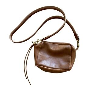 Genuine Vintage Leather Crossbody Purse | Two-Toned Leather Strap | Gold Hardware | Excellent Condition
