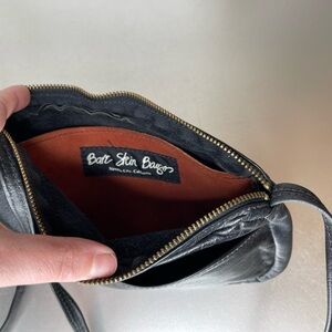 This vintage leather shoulder bag from Bare Skin Bags is a stylish and minimalist addition to any collection. With a solid pattern and black exterior and strap, it's perfect for a city theme. The bag features a zip closure and unlined interior, with black hardware and a brand card for accessories.