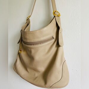 Vintage Leather Shoulder hobo Bag Beige 70s Neutral Monochrome Minimalist