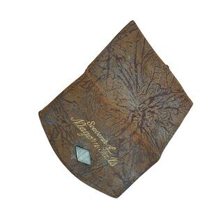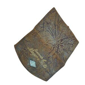 This vintage leather wallet serves as a nostalgic souvenir from Niagara Falls, capturing the essence of past travels. Its unique textured design, coupled with the engraved lettering and diamond embellishment on the front, offers both aesthetic appeal and practical use. The wallet features a snap closure, ensuring that contents remain secure.