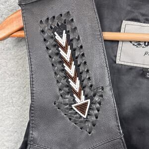 Vintage Leather Vest Tribal Beading Snap Close SZ 44 Traditional Native American