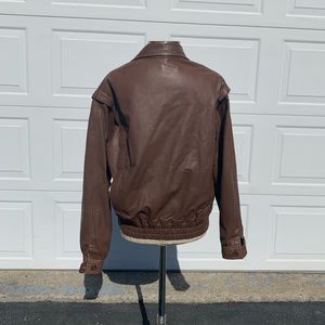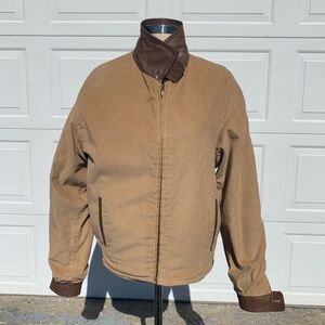 The best of both worlds! Reversible jacket made of butter soft Italian leather and plush corduroy. I love that the corduroy side has a leather collar and wrist. Both sides have pockets, and the leather side has zipped pockets. This jacket is in excellent condition. There is no tag size, but fits like a men’s medium. Please refer to measurements.