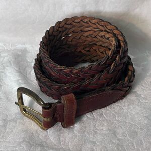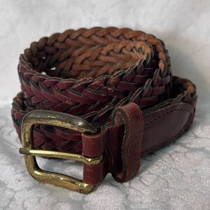 Vintage Leather Belt Unisex M/L Brown Braided Gold Tone Buckle Made In Uruguay