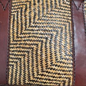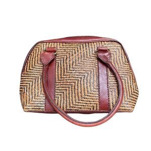 Vintage Leather Woven Wicker Brown Tan Purse Satchel Handbag