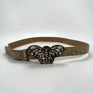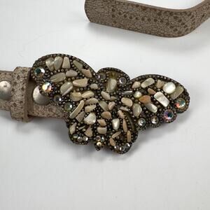 Vintage Leatherock Butterfly Buckle Genuine Leather Cream Boho Belt Size M