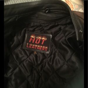 Vintage black & brown leather jacket with fringe & braided leather detailing, silver pieces on both shoulders & back. Sides with leather laces for snug fit. Removable zippered lining and inside stash pocket. This thing is heavy duty and She’s ready for a new life ❤️❤️❤️ Small red something on the zipper itself, see pic for a close look😎 happy to post more pics if needed!