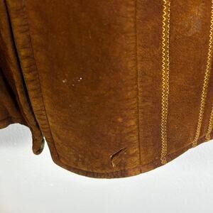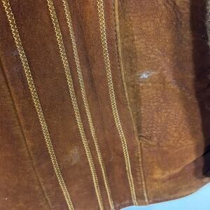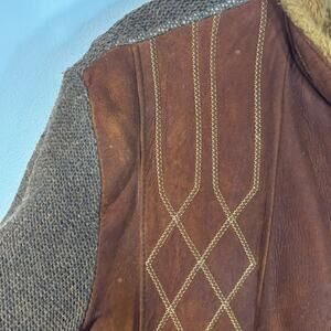This jacket is very old. There is no size tag but my guess is Men's M or L. Please check measurements. I have photographed the flaws. The inside of sleeves will need mending. Please look over all pictures.