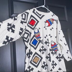 Vintage L'eau Vive Retro Fish Diamond Geometric Top Black White Size Medium