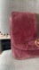 Beautiful burgundy suede bag with green and red stripes and gold hardware. This bag is missing its strap. Signs of use throughout. Please look at all photos carefully.