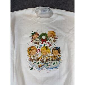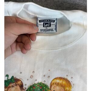 Vintage Lee 90s Christmas Angels Sweatshirt Mens Large White Crewneck Holiday