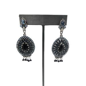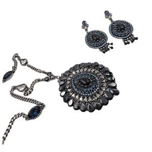 This rare vintage necklace and earrings set by Lee Angel (Roxanne Assoulin's company) features an extra long art deco, rhinestone-accented necklace/pendant and matching pierced earrings.