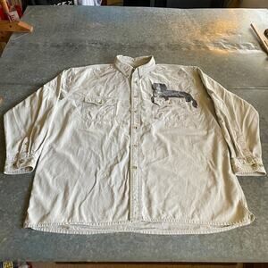 Vintage Lee Bernese Mountain Dog Painted Denim Button Up Shirt Mens XXL Tan 90s