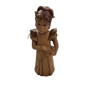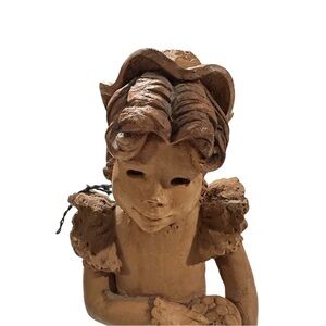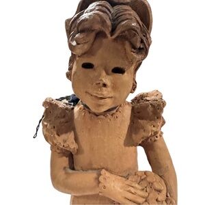 Vintage Lee Bortin Super Sweet Girl Smiling, Wearing a Hat, Holding a Bowl Intricately Molded and Sculpted Clay Figurine Made in Chicago Signed by L. Bortin 11.5” Tall. This clay figurine is preowned and in very good condition.